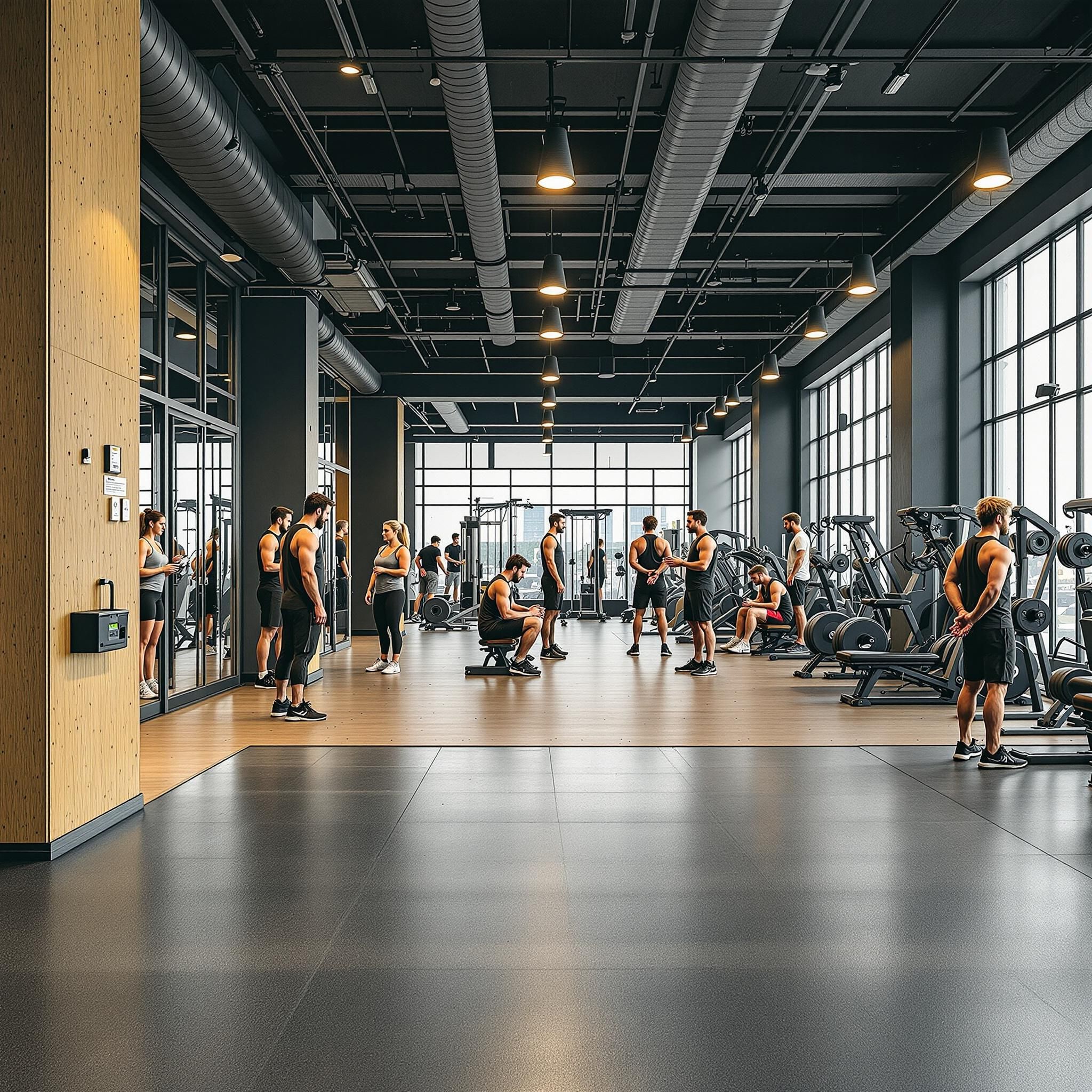Вокруг вас занимаются подтянутые посетители - кто-то качает железо у стойки с гантелями, кто-то бежит на беговых дорожках. У стойки регистрации стоит мускулистый администратор, а рядом с кардио-зоной тренер проводит групповое занятие.