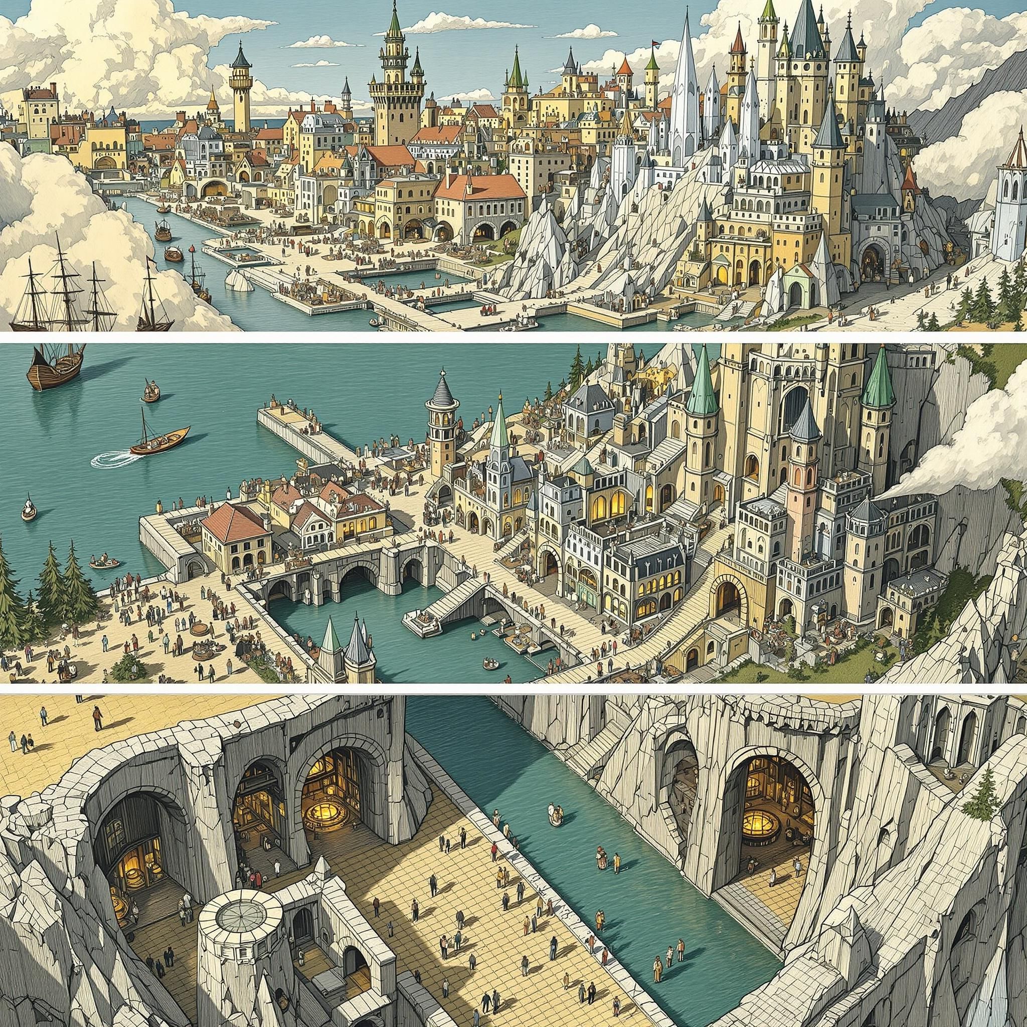 Вместо игры в слова, давайте исследуем настоящие города в нашем мире. Может быть, торговый город на берегу моря? Или древний город магов в горах? А может быть, подземный город гномов?