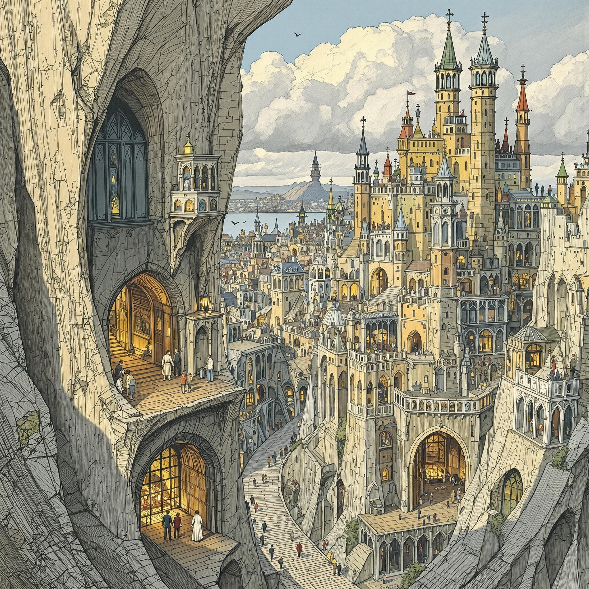 You could visit a bustling trade city with merchant guilds, a mysterious floating city in the clouds, or perhaps an underground dwarven city carved from living stone?