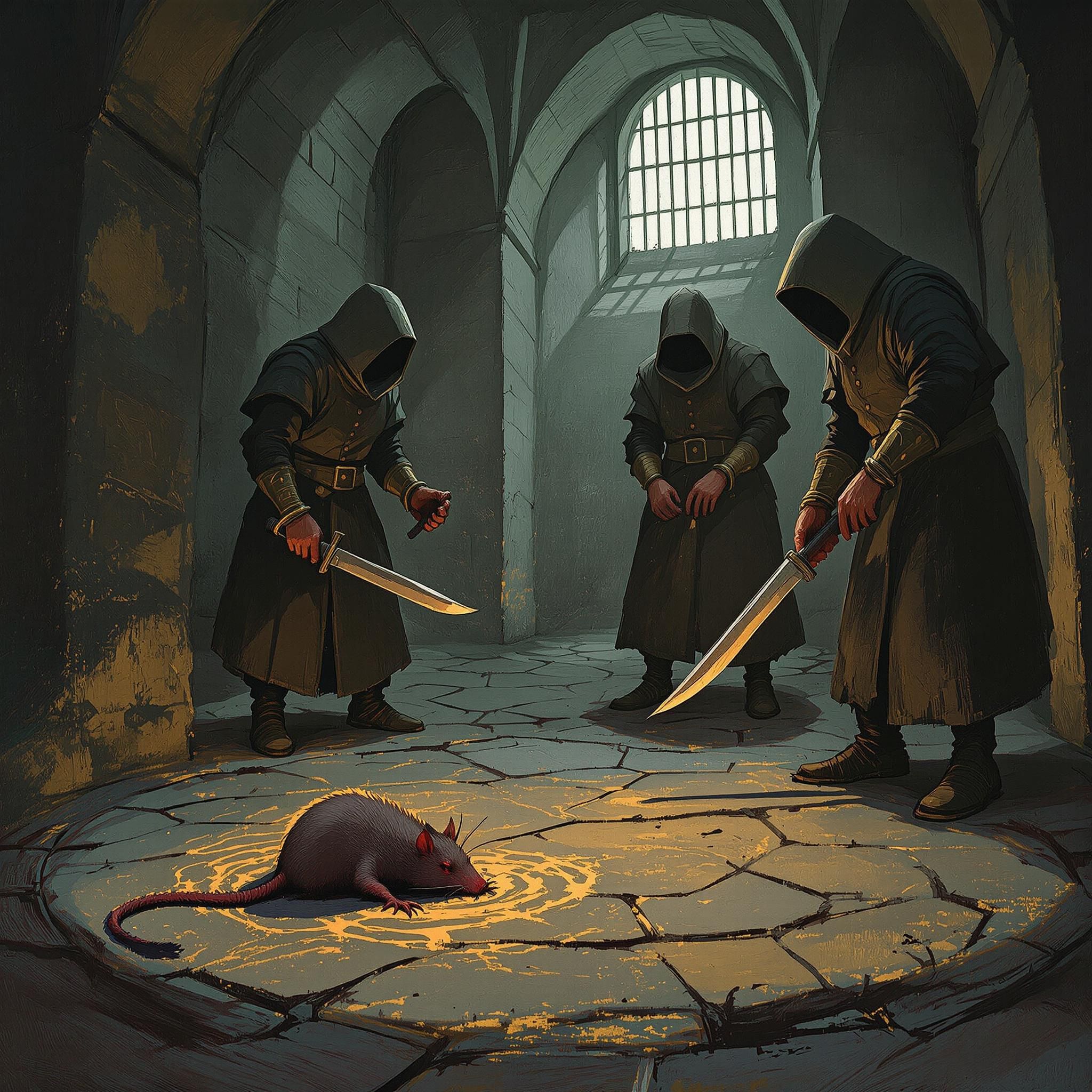 Крыса в углу вдруг дёргается, её глаза загораются красным. Но древние силы Урала требуют больше крови, чем капли с языка. Ритуал начат, но не завершён.