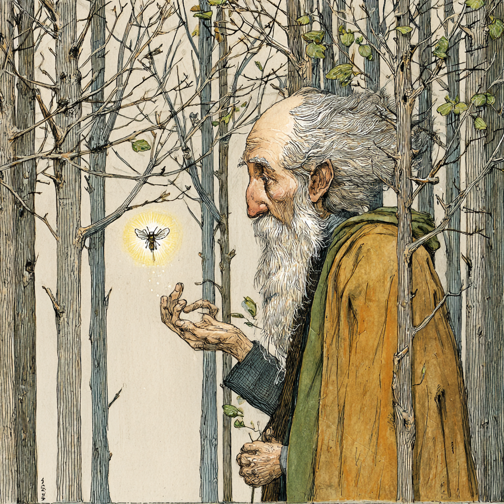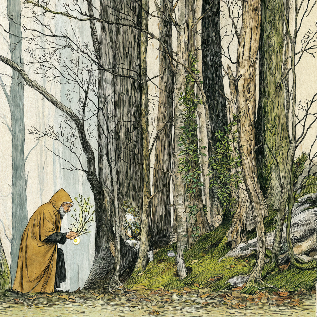 “Ah, a traveler,” the druid says with a warm but cautious smile. “Few venture this deep into our forest uninvited. I am Elderoak, guardian of this grove. The fey grow restless when strangers pass through - they sense your intentions before you speak them.”